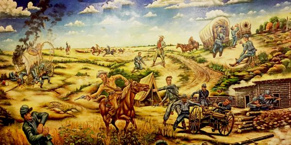 Civil War were written in Kansas and Missouri where irregular combatants fought. The fighting and deprecation's in this area started shortly after passage of the Kansas/Nebraska act in 1854. On October 6, 1863 William Quantrill and his men, having sacked Lawrence Kansas, happened upon a Federal post (Ft Blair) at Baxter Springs, Ks. Defending the post were parts of the 3rd Wisconsin Cavalry and the 2nd Kansas Colored Infantry.