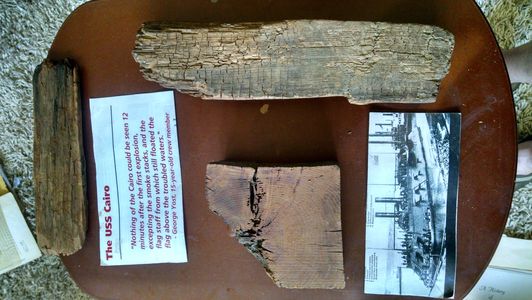 until historian Ed Bearss (historian at Vicksburg Nat. Military Park) and two companions Don Jacks and Warren Grabau set out in 1956 to discover the grave site in 1956. They thought that they had success and after three years divers brought up armored port covers to positively confirm the find. The hopes of lifting the intact Cairo from the Yazoo mud were crushed in October 1964 when the three-inch cables being used to lift the Cairo cut deeply into its wooden hull cutting the ship into sections. By the end of December, the battered remains were put on barges and towed to Vicksburg. Eventually the remains ended up at Pascagoula, Mississippi, where the Cairo was carefully restored as much to her original state as possible She is now on display at the Vicksburg National Military Park complete with the big guns.