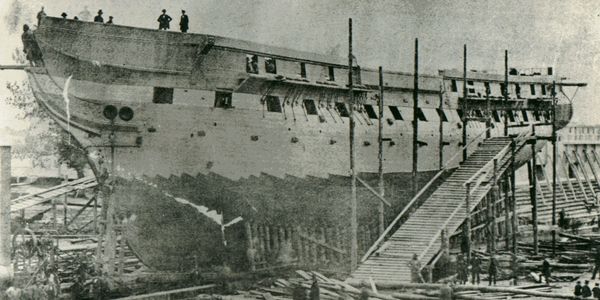 as a wooden-hulled, three-masted heavy frigate of the United States Navy as named by President George Washington using the famous document as the guideline name. It is the world's oldest commissioned naval vessel still afloat. She was launched in 1797. The ship was built in the North End of Boston, Massachusetts at Edmund Hartt's shipyard using oak timbers from the region.