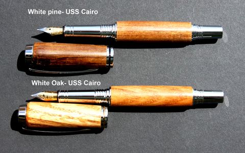 where she was captured at the time of the Ft Sumter episode. Because she was built in the north, it was common for the outfitters to use white pine for planking and the masts. Thus this pen was made from planking of the ship. It was extremely difficult to turn as petrification processes had already begun. I had dulled nearly every pen making tool in my collection. The wood was originally obtained from Mr. Cary Delacy of the Historical Shop in New Orleans.