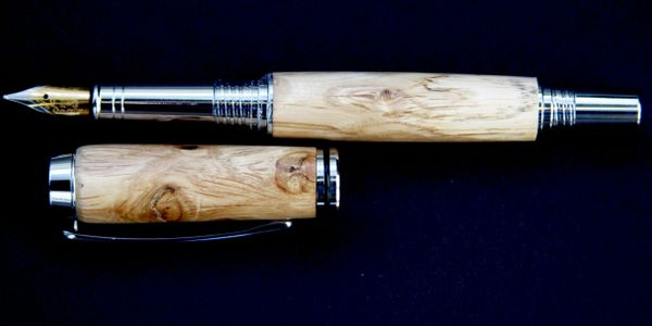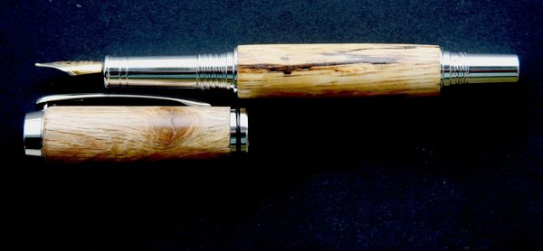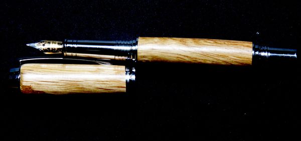 has been estimated to be between 200 and 250 years old. It stands at the road junction mentioned above and within shouting distance to the location of the Block House (now gone). The wood from a branch trimmed from this old tree made into a nicely colored and beautifully patterned pen. We want to give a Big Thanks to Dennis Gallahan for procuring the wood that this pen is made from.
