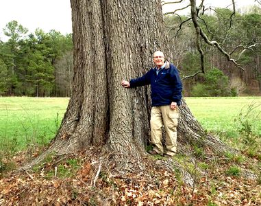 both of the Resaca area were at the gate of the newly created battlefield site park to greet us. It is to be noted that photographs of the field made after the battle show assorted individual trees growing randomly all over the battlefield. The cherry bark oak shown with Strobel is undoubtedly one of these trees. It measured about 7.5 ft in diameter at waste high. The tree could easily be over 200 yrs old given its rate of development. The tree is hallowed by locals as a witness tree.