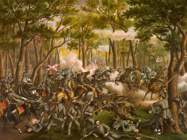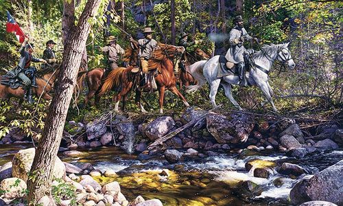 Brice’s Crossroads for its muddy roads and dense woods (mostly blackjack oak) to mitigate the Union’s numerical advantage and called for his men to attack the leading Yankee cavalry, which would force the trailing infantry to hurry to the battle and fight before recovering from the march. The plan worked to perfection. In the afternoon, Forrest orchestrated a series of attacks all along the Union front, which broke the Yankee lines and sent the Federals from the field in disarray with the Confederates in hot pursuit. The chase continued into the next day. The Battle of Brice’s Crossroads stands as his greatest military victory.