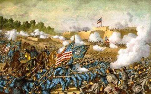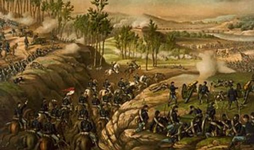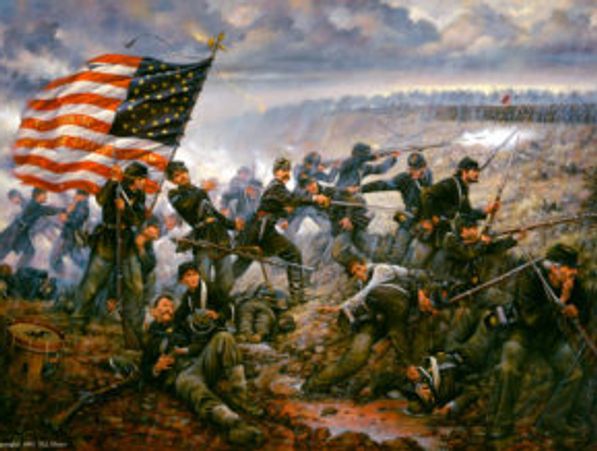 to be General in Chief of all Union armies. His approach was to have a concerted and unified effort made against all Confederate armies at the same time throughout the Southland. He and General Meade would assume the responsibility to attack Lee’s army of Northern Virginia and eventually take Richmond. As Sherman marched on Atlanta, Grant in central northern Virginia engaged Lee’s army west of Fredericksburg at a place called the wilderness. It consisted of a tangled brush, and immature trees and rolling hills making warfare almost impossible. The Union would suffer about 18,000 casualties over 48 hours and that was many more than lost by the Confederates. Then, after 48 hours of intense combat, neither side was the victor.