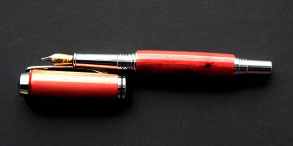 was the McCoull house which served as Confederate Headquarters. It was heavily damaged during the battle and was totally destroyed by fire in 1921. Not far from the house was an Eastern Red Cedar growing in an open field. Growth rings on the tree showed annual rings of only on to two millimeters per year. The tree, based on the radius of the trunk and the narrow growth rings would be well over 200 years old. The fine grain and reddish coloration of the cedar wood makes for a gorgeous pen.