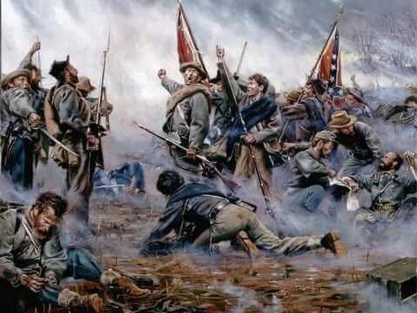 managed to reach the area before the union and quickly built defensive breastworks, trenches and artillery emplacements- known as the “muleshoe.” Over the next 12 days Spotsylvania witnessed some of the bloodiest fighting of the entire war with a total of nearly 30,000 casualties. Union troops had modest success in breaking the mule shoe but their efforts were quickly quelled. The battle was inconclusive and Grant disengaged from the fight as his troops continued to march south towards Richmond.